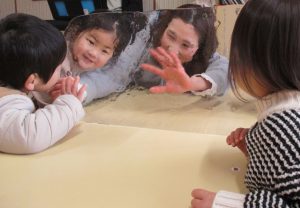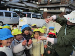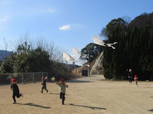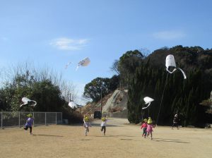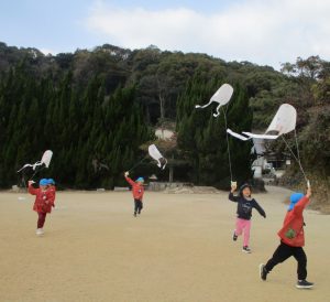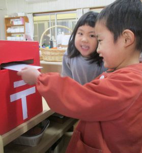 初詣に近くの神社へ行ったり、凧を作って何度も飛ばしたりして楽しみました。 風がよく吹いた翌日には、大きな氷ができているのを見つけ、寒さも忘れてはしゃぐ子ども達でした。 お手紙ごっこも始まり、手紙を書いて相手に届いたり受け取ったりする喜びを味わいました。