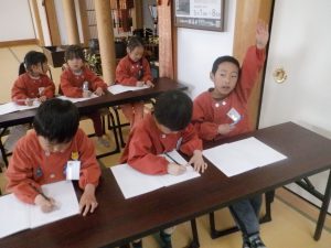 学校ごっこもはりきっていたあお組さん、小学生になる姿を楽しみにしています。