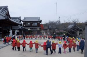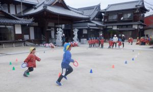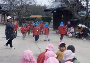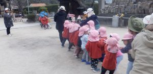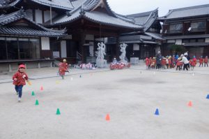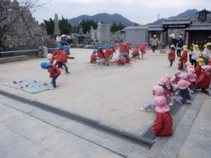 城山公園へお散歩に出かけたり、お寺の境内でわらべうたをしたり綱引きやゲームをして遊んだり、たくさん一緒に遊びました。
