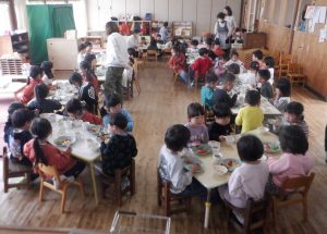給食は子ども達の大好きなメニューが詰まったお子様ランチを、みんなと一緒に食べました。