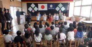 先生からは歌のプレゼント。♪思い出のアルバムの歌詞にあお組さんが過ごした1年間を織り込み、心を込めて歌いました。